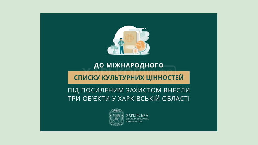 За поданням Харківської ОВА до Міжнародного списку культурних цінностей під посиленим захистом офіційно внесли три унікальні об’єкти, розташовані в Харкові.