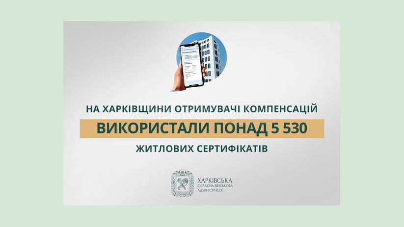 Отримувачі компенсацій з використанням житлових сертифікатів придбали 3 702 об’єкти нерухомості на території Харківської області - 3 048 квартир та 654 приватних будинків. Вартість придбаного майна складає понад 7,9 мільярда гривень. Загалом вже використано понад 5 530 житлових сертифікатів, отриманих за зруйновані об’єкти нерухомості в Харківській області. Більшість отримувачів компенсації придбали житло у Харкові, Ізюмській та Балаклійській територіальних громадах, решта – на території Київської, Львівської, Дніпропетровської, Полтавської, Закарпатської та інших областей.