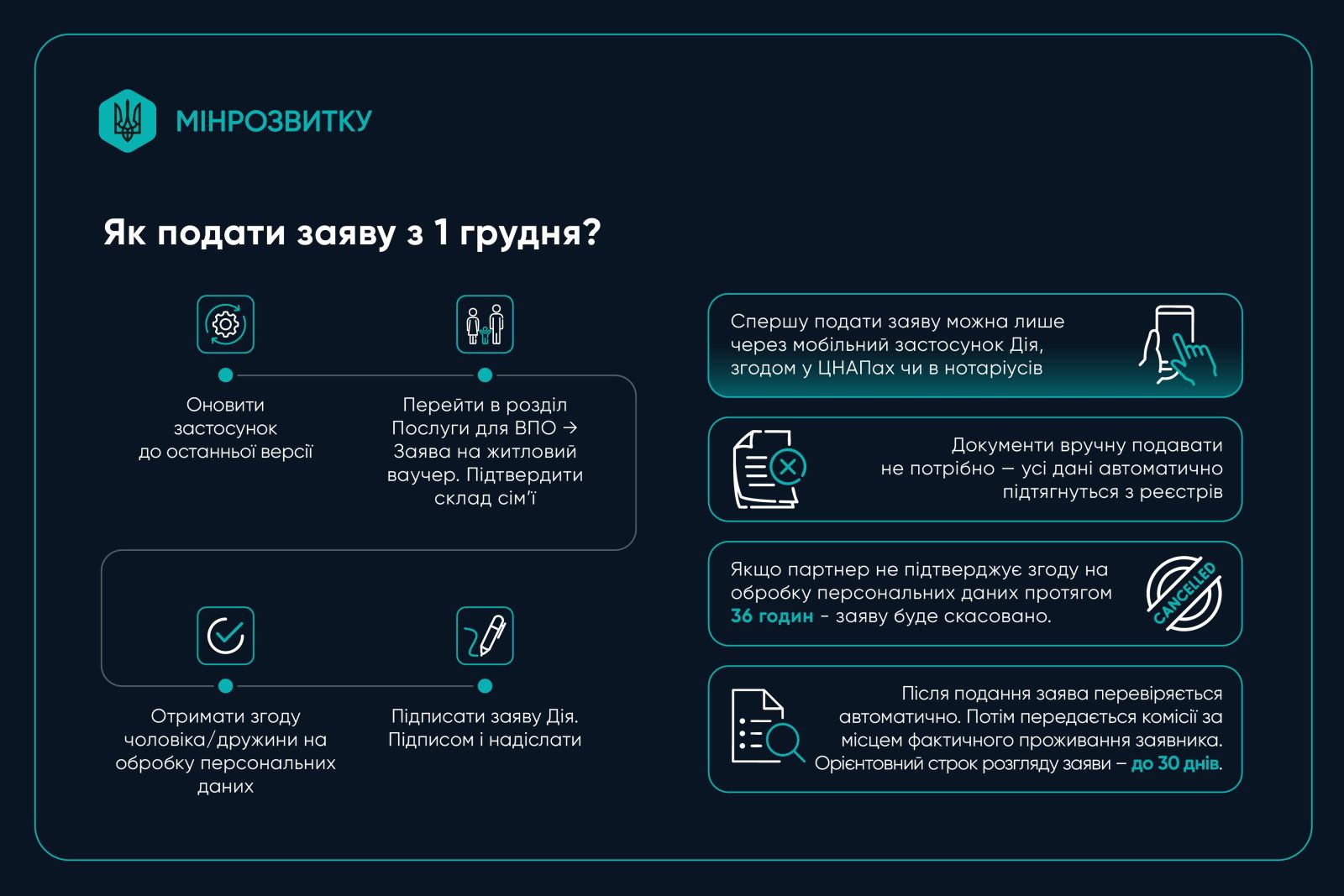 Відсьогодні, 1 грудня, внутрішньо переміщені особи, які виїхали з тимчасово окупованих територій і мають статус учасника бойових дій або особи з інвалідністю внаслідок війни, можуть скористатись новим компонентом єВідновлення і подати заявки на житловий ваучер номіналом 2 млн грн.